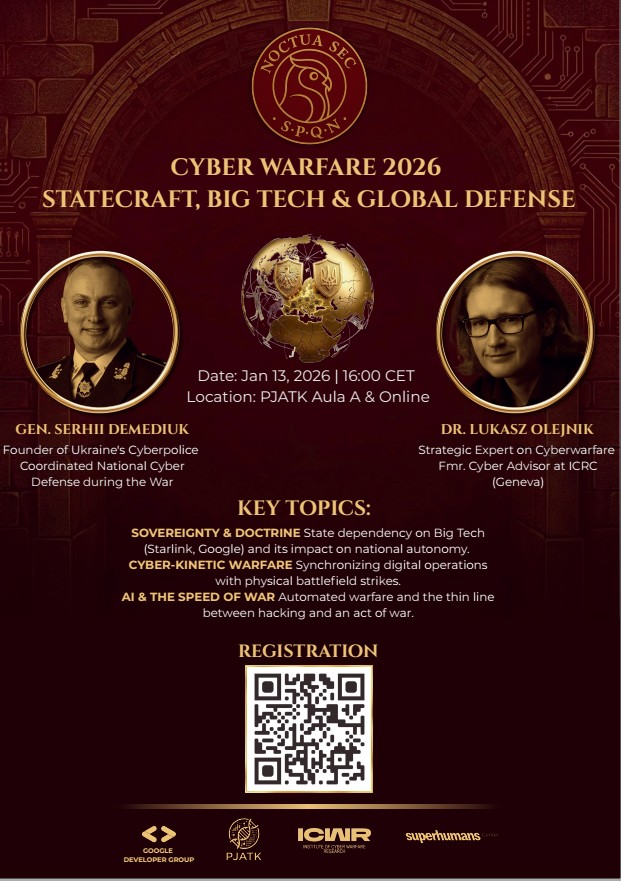 • Д-р Лукаш Олійник — один із найвпливовіших аналітиків світу (Женева/Единбург), який консультував Червоний Хрест щодо етики та правових рамок ведення сучасної кібервійни за стандартами НАТО та міжнародних інституцій.