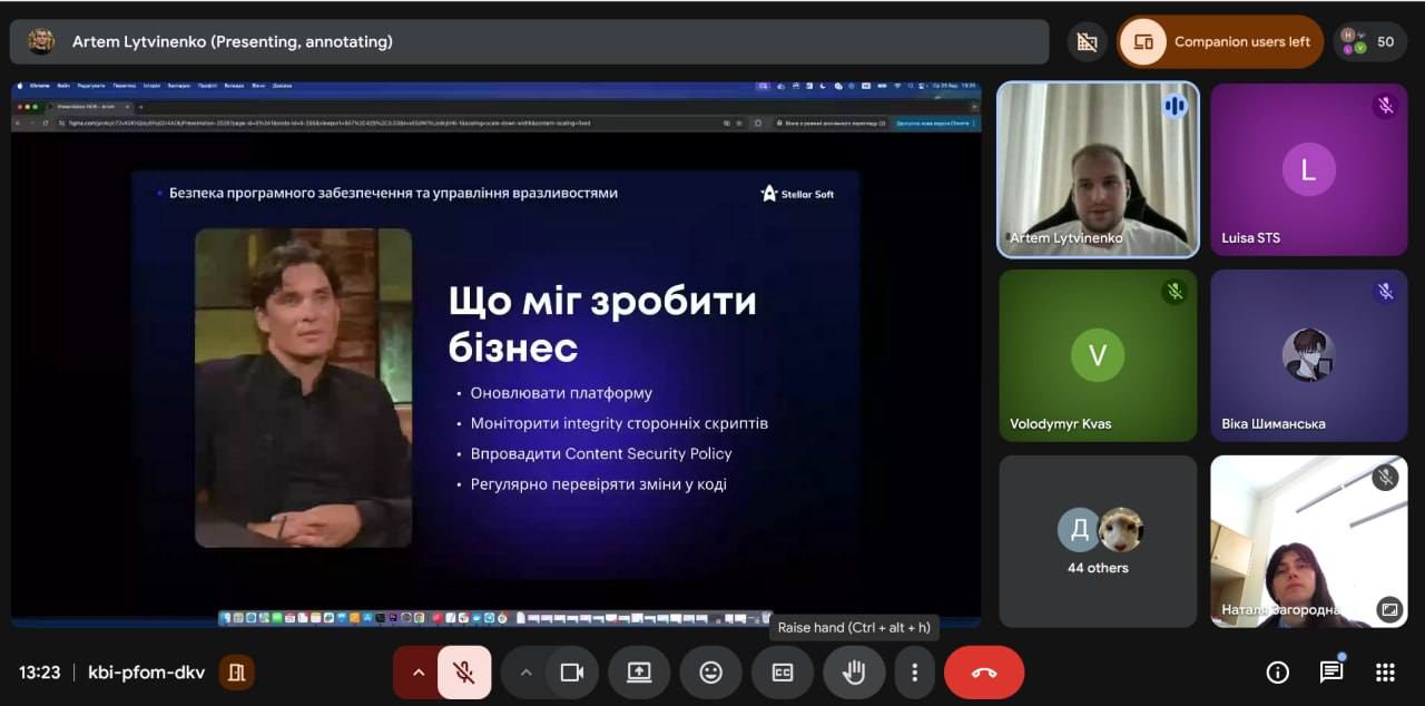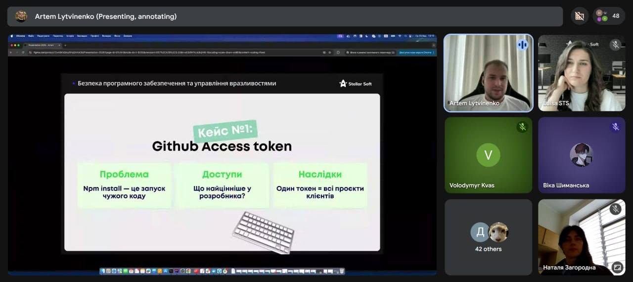 25 березня, team lead компанії Артем Литвиненко провів для студентів кафедри кібербезпеки лекцію «Практична безпека ПЗ та реагування на інциденти: реальні кейси з індустрії».